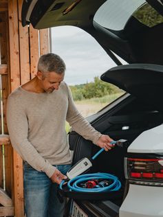 Laden an einer Haushaltssteckdose mit integriertem Schutz vor Überlastung und Fehlerströmen. Geeignet für Ausnahmefälle, wenn keine andere Ladestation zur Verfügung steht. Haushaltssteckdosen sind nicht für dauerhaftes Laden ausgelegt – es kann zu Überhitzung kommen.